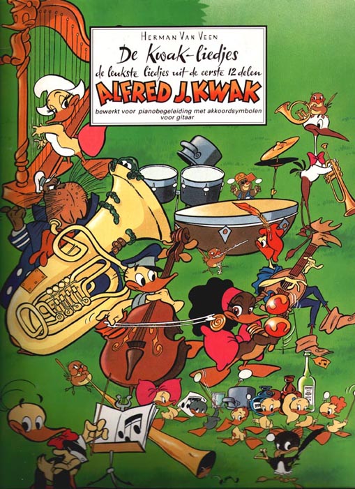 uitgeverij: Harlekijn Uitgeverij uitgiftejaar: 1990 isbn: 90 6386 083 8 formaat: 23 x 30 cm inhoud: de leukste liedjes uit de eerste twaalf delen van Alfred J.Kwak, bewerkt voor pianobegeiding met akkoordsymbolen voor gitaar aantal pagina's: 39