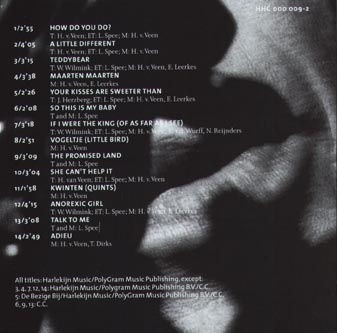 how do you do a little different teddybear maarten maarten (instr.) your kisses are sweeter so this is my baby if I were the king (of as far as I see) vogeltje (little bird) (instr.) the promised land she can't help itkwinten (quints) (instr.)anorexic girltalk to meadieu (instr.)